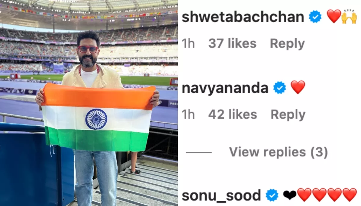 On August 8, 2024, Abhishek took to his Instagram handle and posted a picture from the on-going Paris Olympics. In the picture, Abhishek proudly held India’s flag in his hands. He was dressed in a casual lime yellow shirt with a white t-shirt underneath, and he teamed it with a pair of blue jeans. A pair of red square glasses completed his geeky look. His sister, Shweta was quick to shower him with love as she posted a heart emoji. Along with it, he wrote: