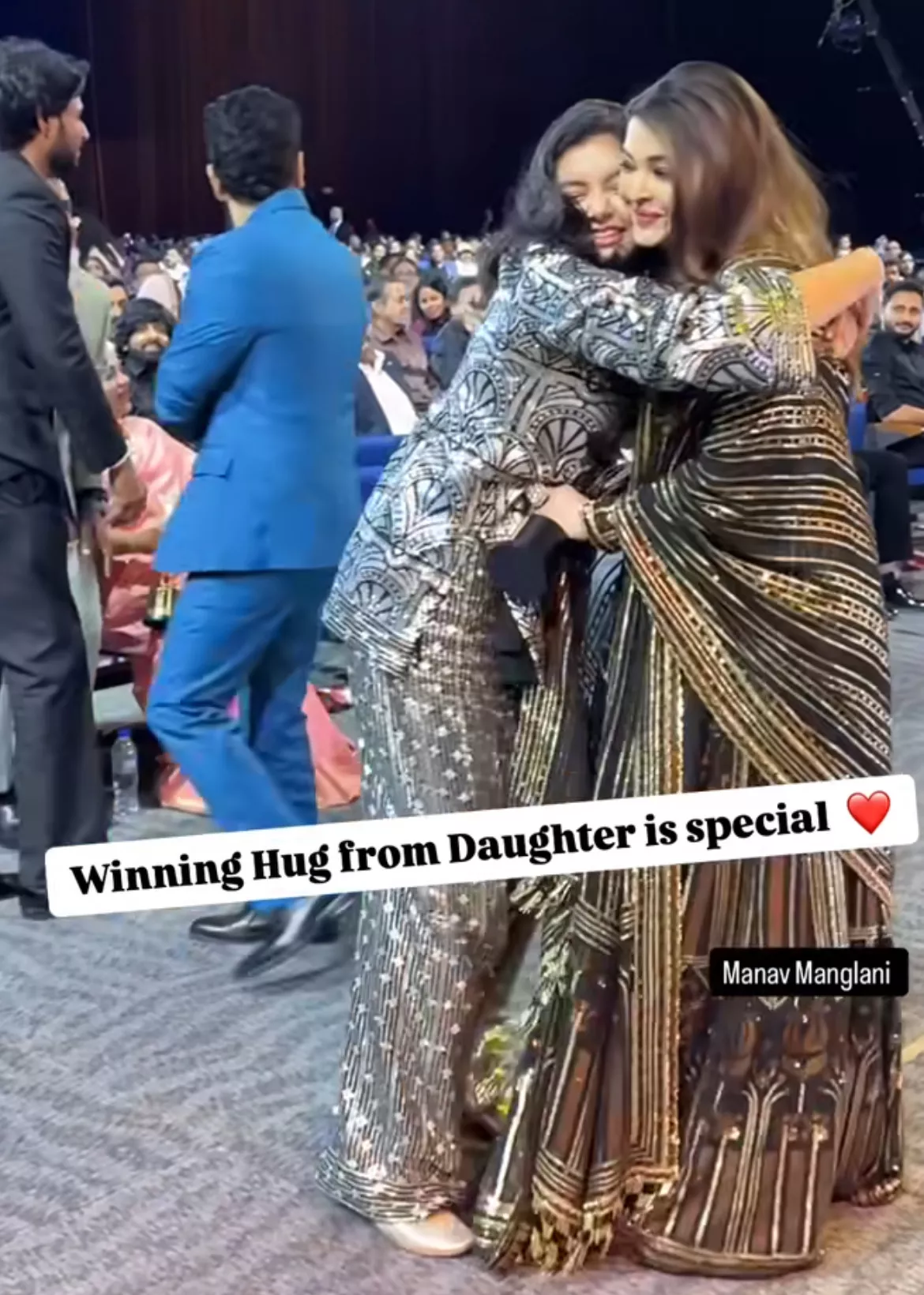 Recently, Aishwarya Rai Bachchan won the award for Best Actress in a Leading Role (Critics) at SIIMA 2024 for her powerful performance in Ponniyin Selvan 2. For the special day, Aishwarya was accompanied by her biggest cheerleader, Aaradhya Bachchan. As the actress graced the stage to receive the trophy, her daughter, Aaradhya, proudly recorded the moment on the camera. Aaradhya was seen beaming with joy upon seeing her mother lifting the trophy. She also ran to hug her mother as the latter came down from the stage.