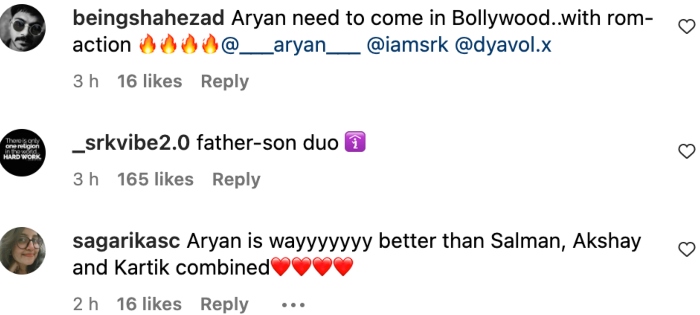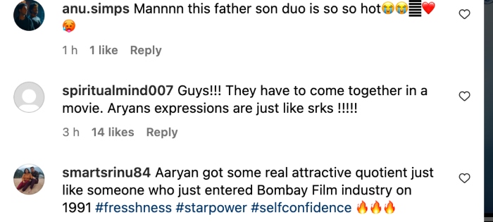 Fans started showering love in the collaboration video of the father-son duo. While some are surprised by the similarities of looks between Shah Rukh Khan and his son, Aryan Khan, others started demanding Aryan Khan to debut in films. Check out the comments below.