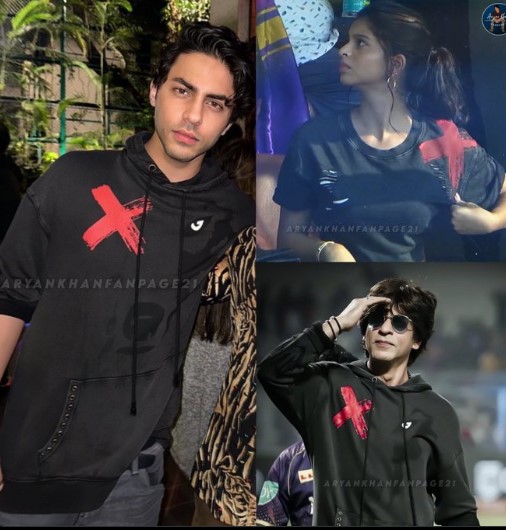 Earlier, the fan page also shared a picture that featured Aryan Khan, Suhana Khan and Shah Rukh Khan wearing sweatshirts from Aryan’s clothing brand. The pictures were taken from the running IPL matches. Check out the image below.