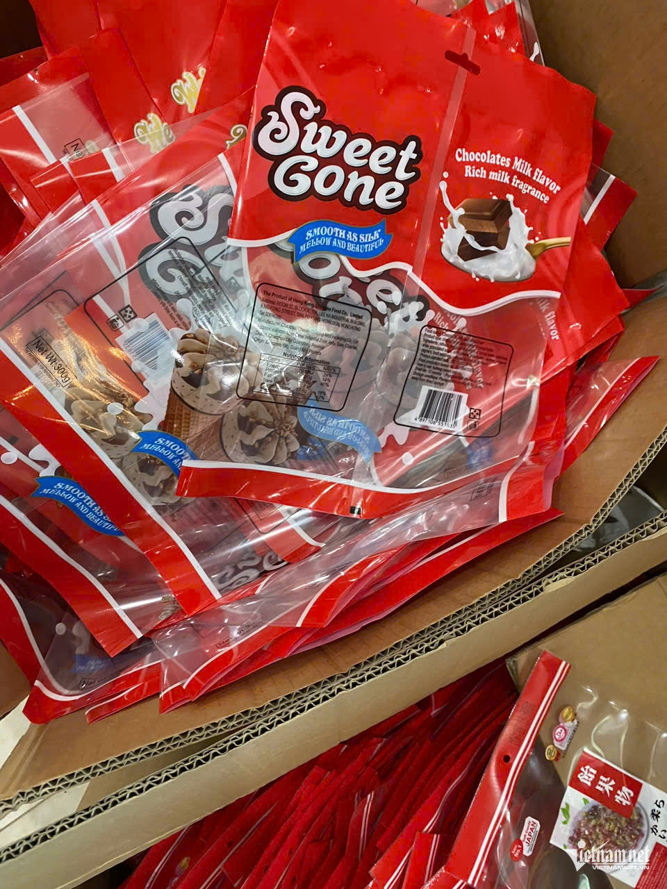 Các túi kẹo giả nhãn hiệu nước ngoài.