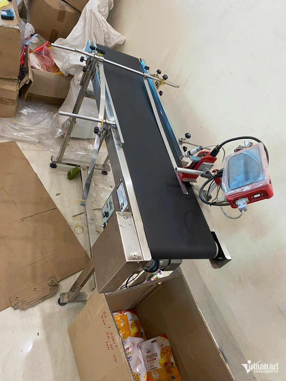 Sau đó, anh ta dùng máy hàn để hàn kín miệng túi và máy in “date” để in hạn sử dụng lên bao bì, biến những túi kẹo này thành “sản phẩm hoàn chỉnh” với xuất xứ giả mạo từ Nhật Bản và Hàn Quốc.